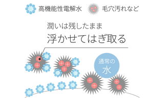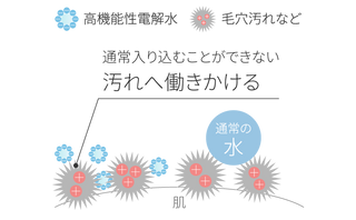 特殊な技術で霧よりも細かく分解した「高機能生電解還元水」を全製品に採用。