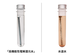 「高機能性電解還元水」は、水道水とは異なり、金属を浸して1年経っても錆びつかないほどクリア。
