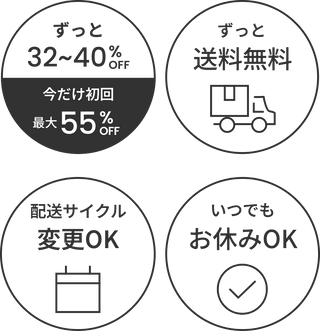 初回は最大55%OFF、2回目以降も永久に32%~40%OFF。